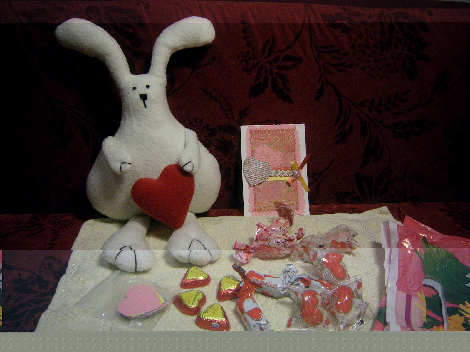 подарочки от Марины. Вот такой очаровательный зайка доставил мне рукодельное сердечко по обмну "Будь моим Валентином", который организовала Алена. Алена спасибо тебе за интересный обмен.