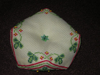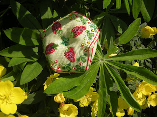 Эту бискорню буду использовать как игольницу и вышивала её для участия в SAL "Игольницы и Ко", который устроила Анжелика в своем блоге Ежевичная поляна. Использовала Аиду 14 желтого цвета, которую мне прислала в подарок Ирина.