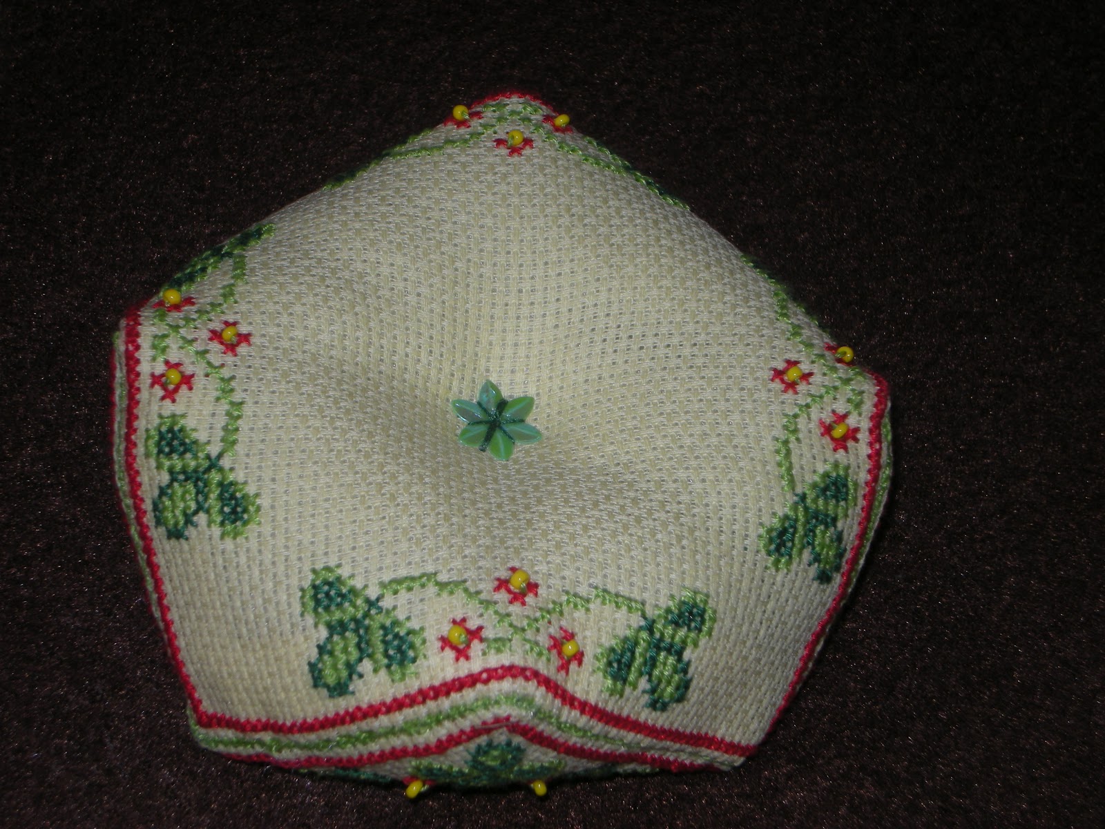 Хвастаюсь вышитой бискорнюшкой. Cхема была давно захомячена из инета, к сожалению не могу сказать точно откуда.