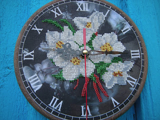 Еще вместе с этим наборчиком я приобрела набор для вышивки часов тоже бисером. Часы я вышила уже давно, но в процессе сборки применила "неимоверную" силу и раздавила часовой механизм (да вот так иногда бывает). Спрятала часы в дальний угол и забыла про них. Но вот в один прекрасный день гуляла я по просторам Алиэкспресс и наткнулась на часовые механизмы всего за 1,05 $. Выписала два на всякий случай..... И вот чудо свершилась, я получила посылочку и мои часики пошли. Показываю вам.
