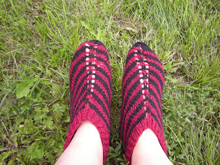 Следки вяжутся на двух спицах, очень легко и быстро. Вот только я не подрасчитала и для начала набрала много петель. Пряжу выбрала толстую, а петелек надо было поменьше,а то получились свободноваты. Но ничего уже запланировала связать ещё одни из какой-нибудь тепленькой пушистой пряжи.