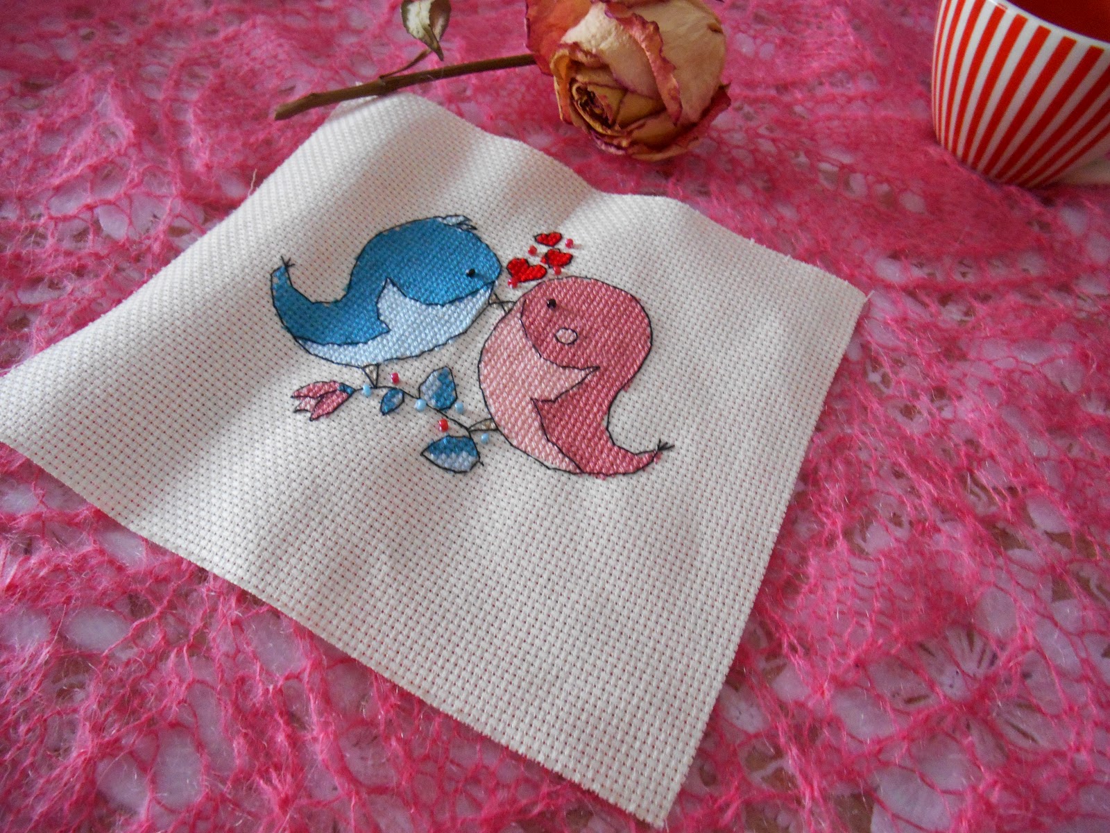 Сегодня хочу показать вам небольшую вышивку. Эти милые птахи вышиты в рамках совместника у Лили. Должны были родиться к Дню влюбленных, но к сожалению готовы только сейчас. Пока не оформила, но идея есть!