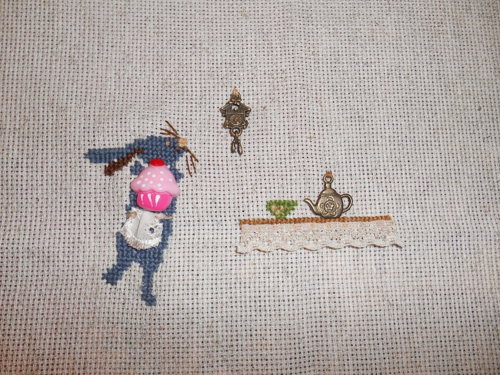 Шармики красивущие лежали в мешочке пылились, а тут пригодились)) кружевная скатерочка на столе нравится....пирог очень яркий аппетитный...и заюшка-хозяюшка в фартучке...