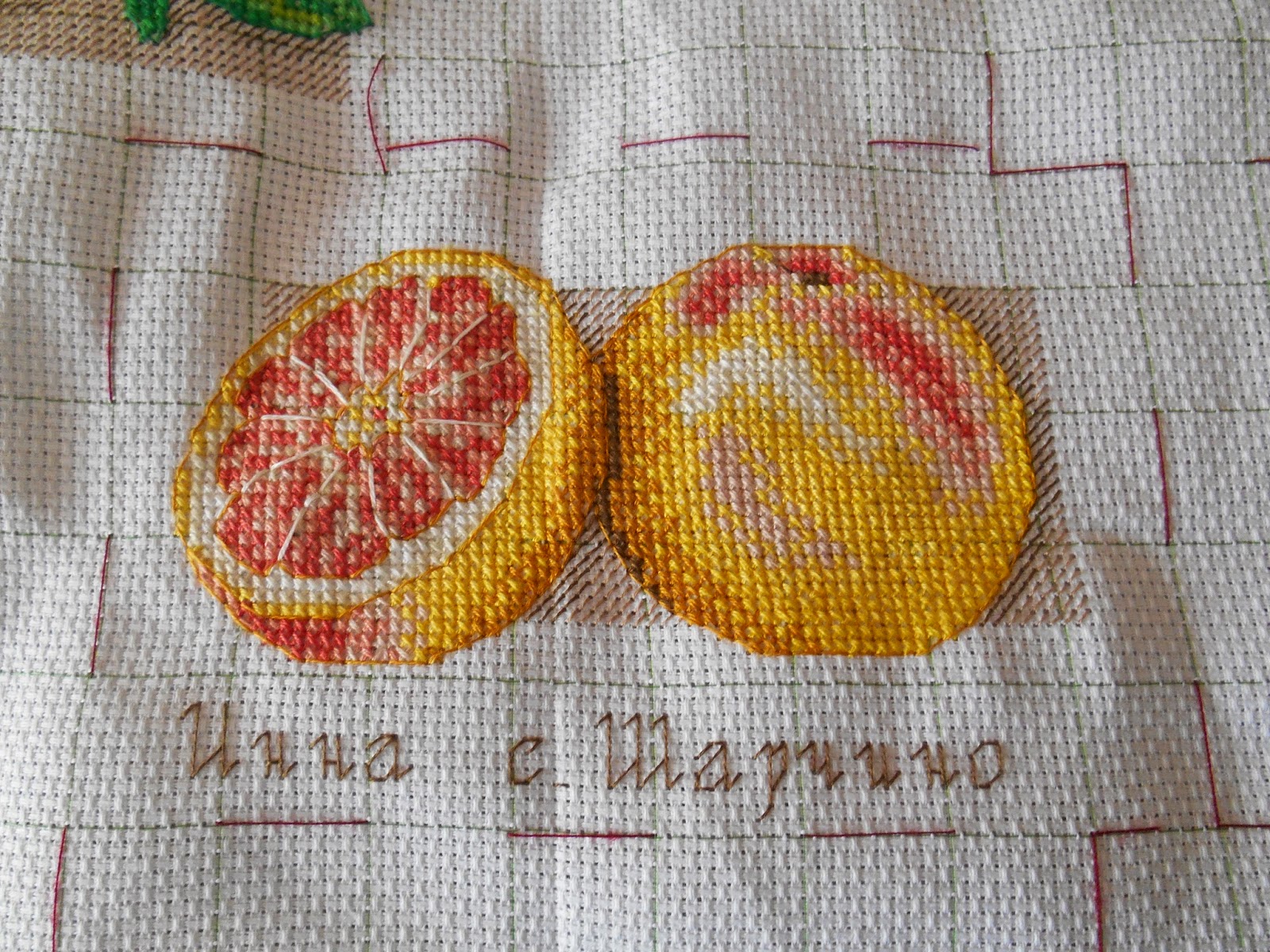 А я всю неделю вышивала кусочек Цитрусового робина для Нины