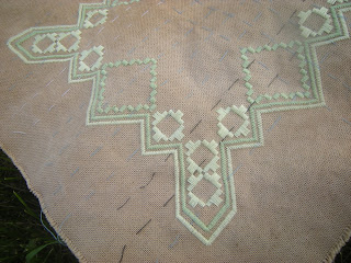 В наборе с цветком уже готовая наволочка и вышиваются только частично цветы, а в новогоднем наборе крупная канва и толстые акриловые нитки, ни разу ещё такое не вышивала)