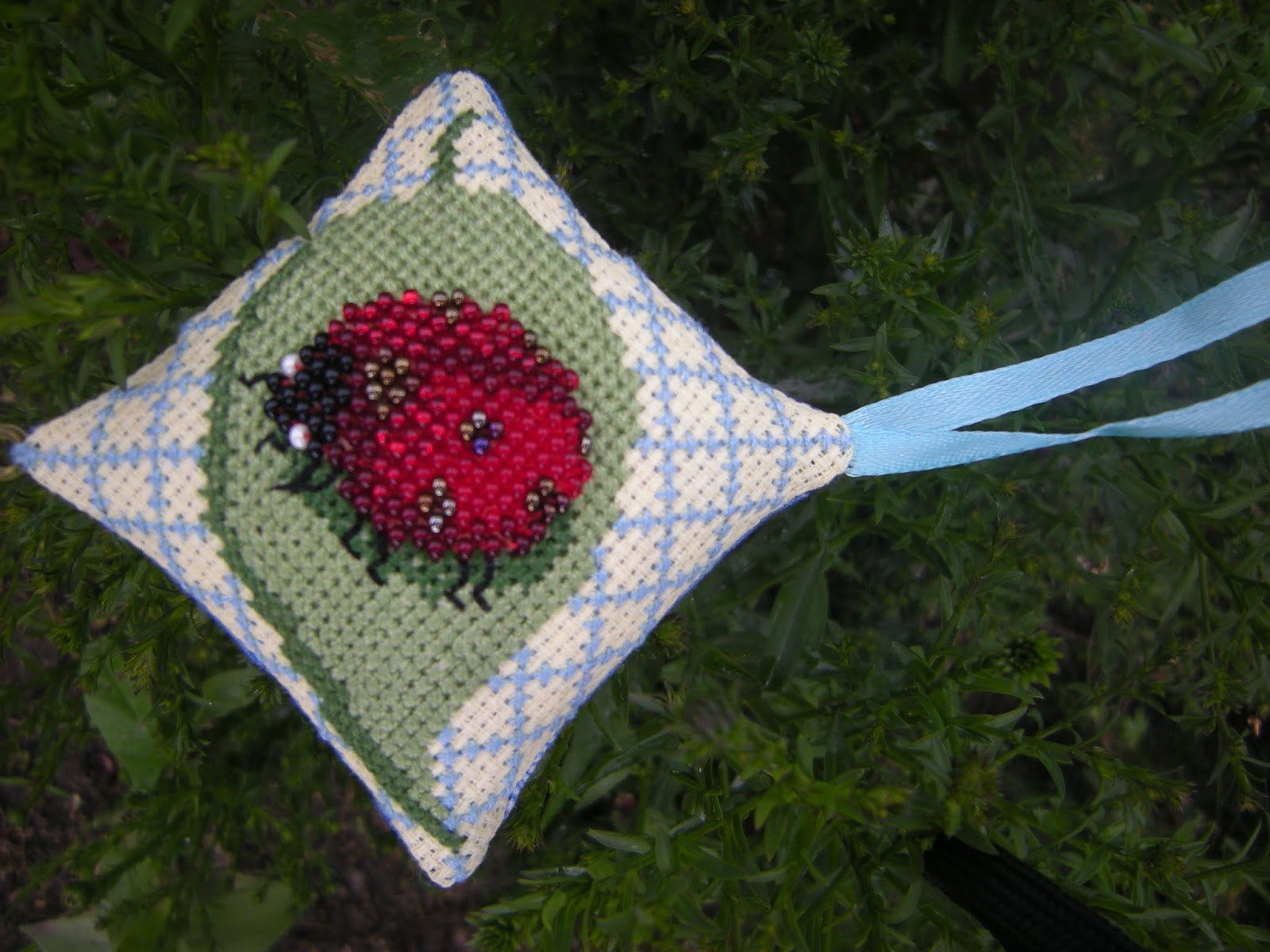 больше всего сейчас продвигается вышивка этого снеговичка (из подушечной конфетки от Светы) Вышивается толстыми акриловыми нитками, гобеленовым швом. Не смотря на всю занятость в субботу были вышиты все красные стежки)) Остались не зашитыми 4 цвета.