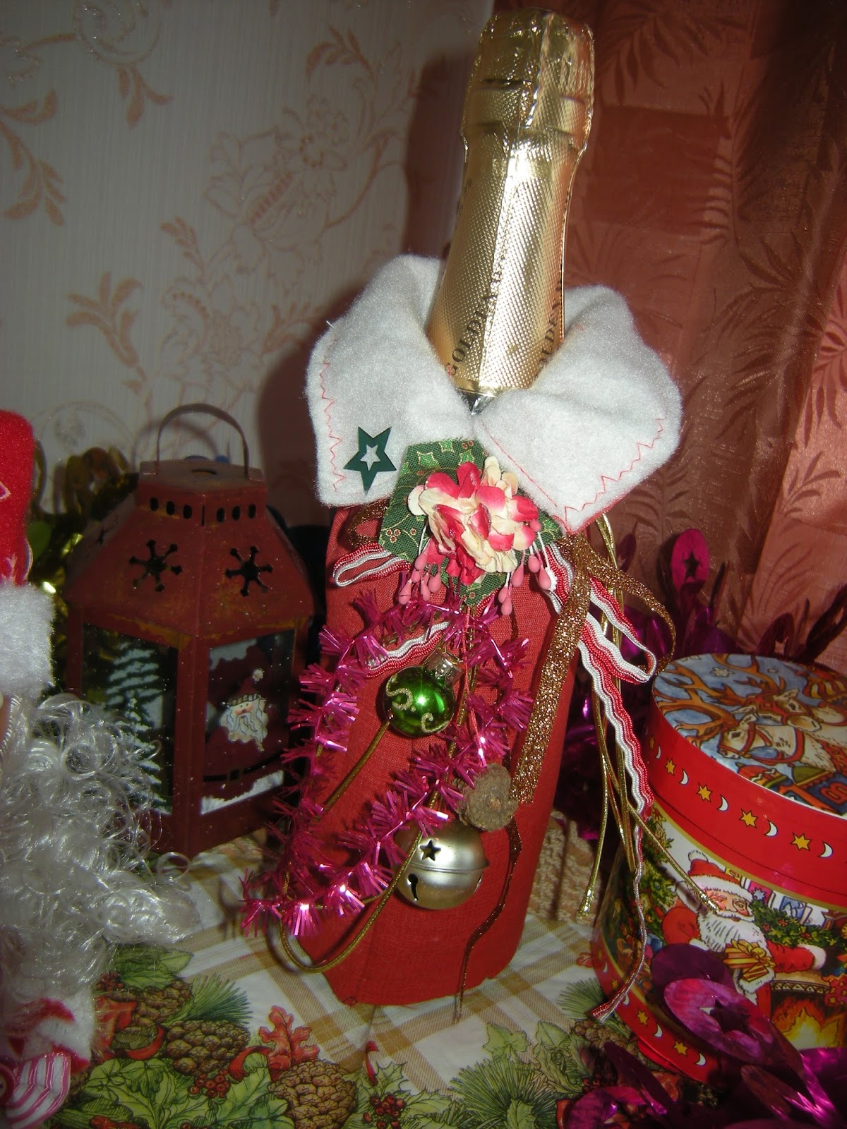 Я продолжаю участвовать в СП "Рождественский переполох-2016 " с Crаzy lab. На этот раз я украсила праздничную бутылочку шампанского